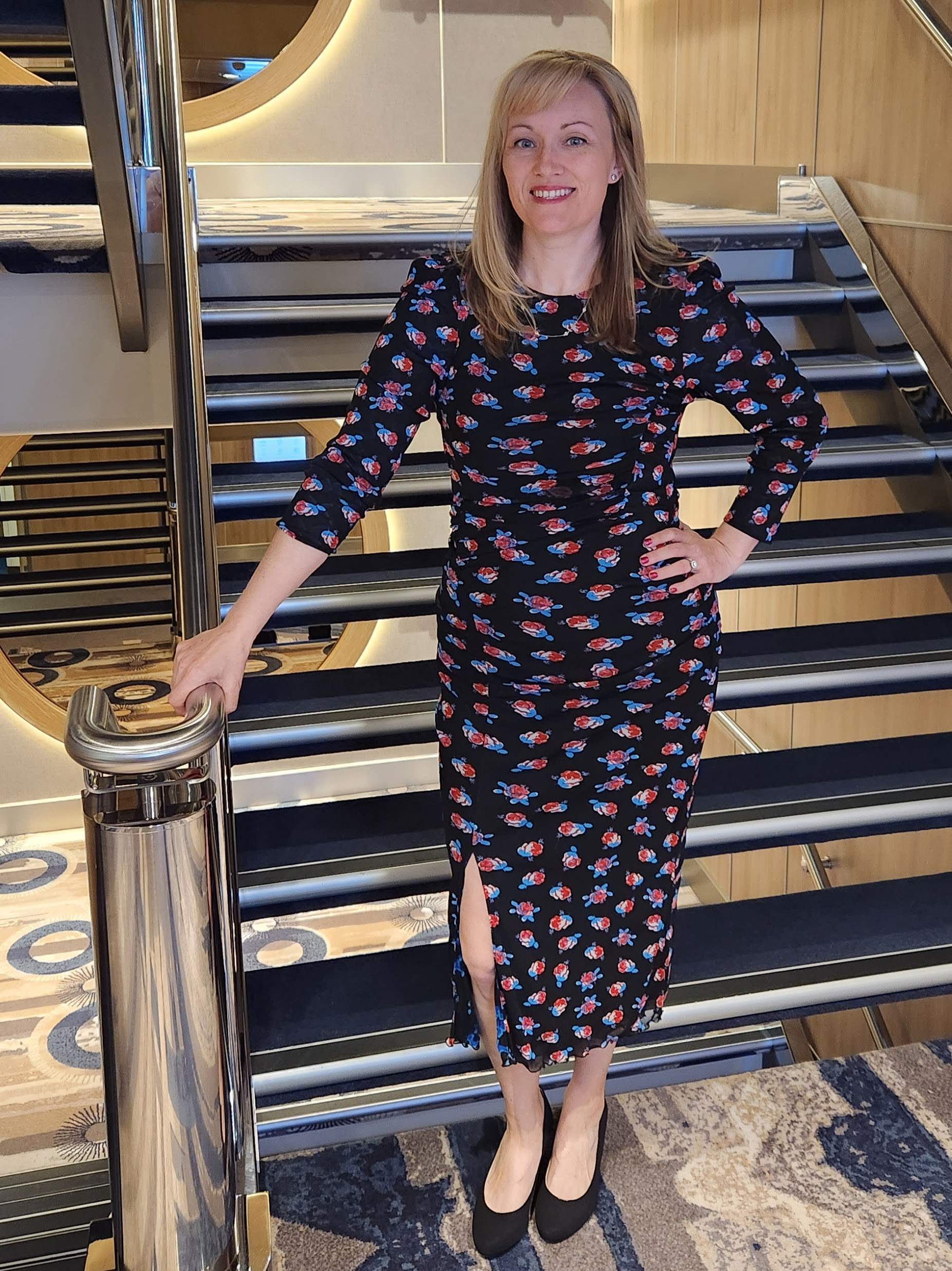 For the spa or pool, flip flops/slides were perfect. If you plan to dress up for dinner, I’d recommend flats instead of heels — they’re easier for walking around the ship after dinner.