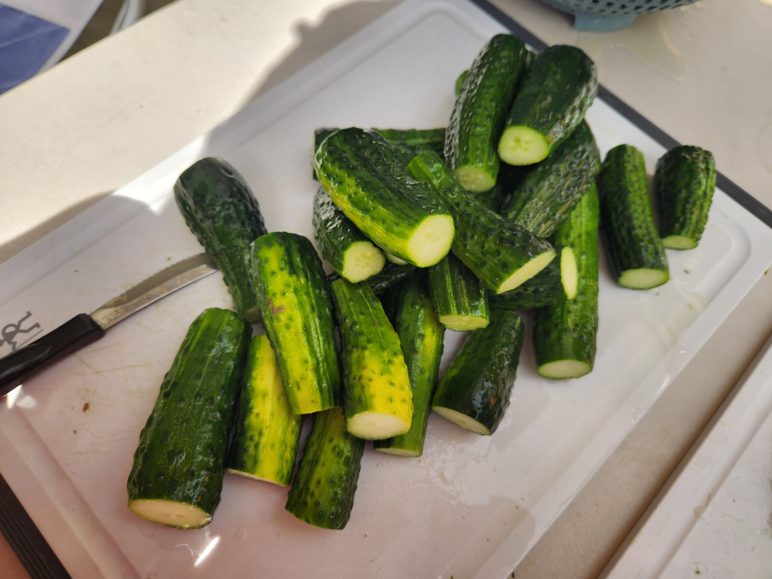 - Several coolers (used to keep cucumbers chilled and fresh while prepping)