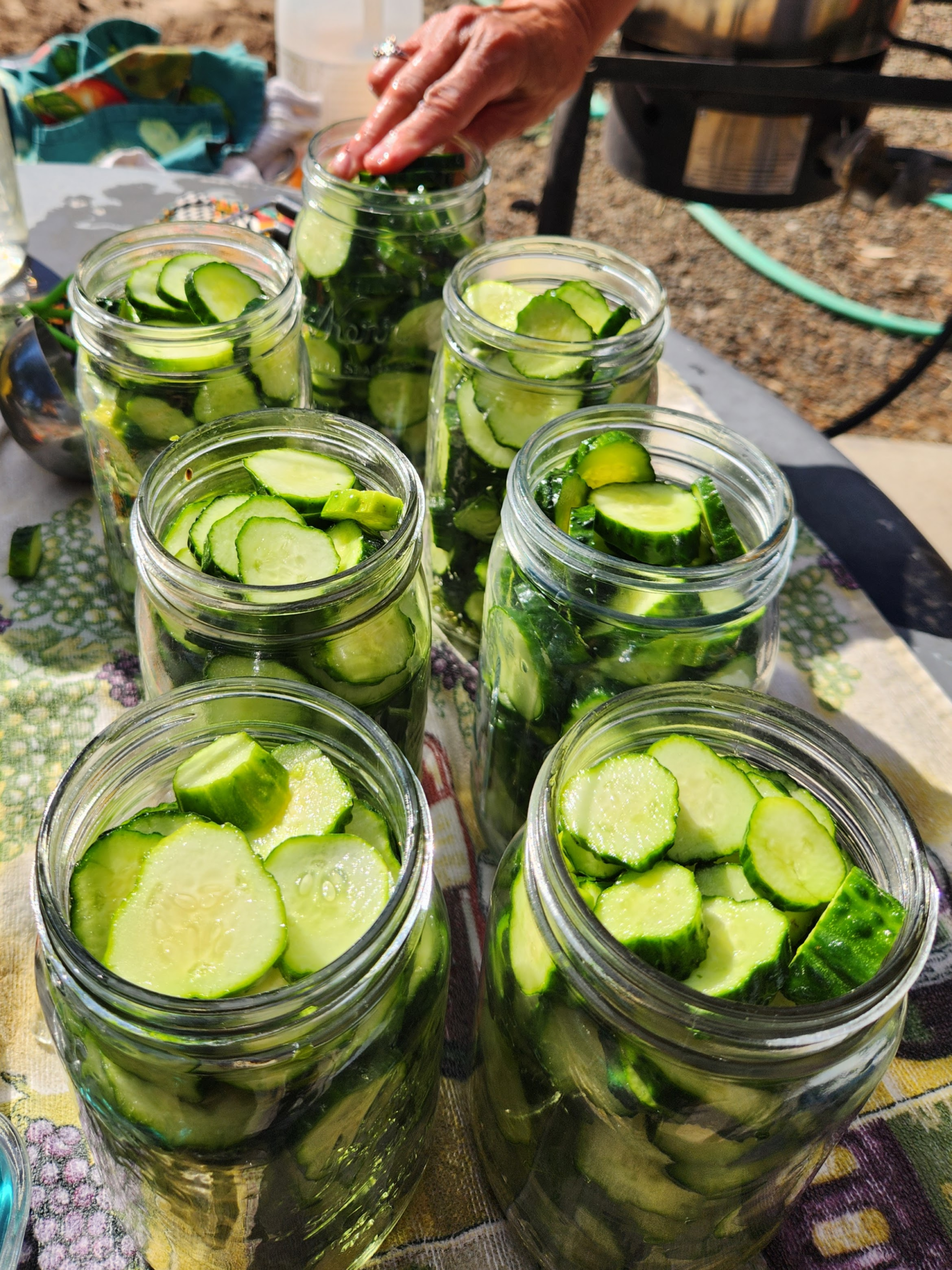 For bread & butter pickles, we sliced them into thin chips just before packing the jars.
