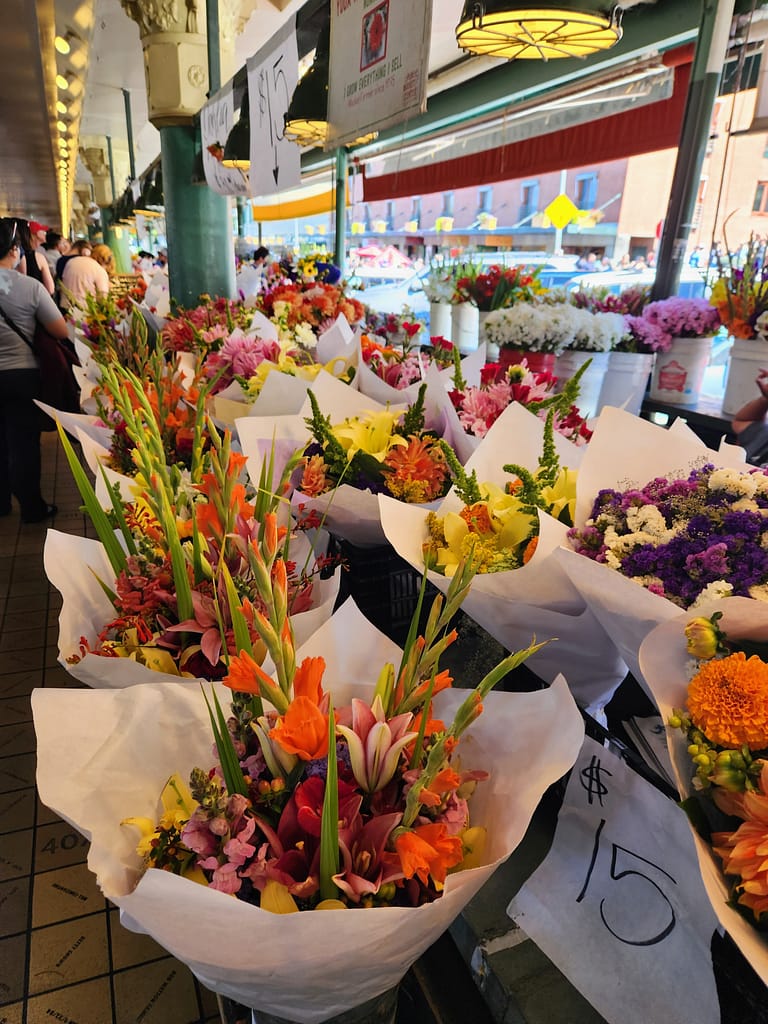 Spring is also the perfect time to enjoy the Seattle Center’s fountain. When it’s running, the kids love to splash around in the cool water while I sit back and soak in the peaceful atmosphere. After playing at the Seattle Center, we head over to Pike Place Market, where we can pick up fresh flowers, grab a snack, and watch the iconic fish throwers. The vibrant atmosphere of the market is always a treat for all ages.